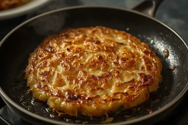 A Gordura e a Paciência: A Rosti deve ser frita em manteiga clarificada ou uma mistura de manteiga e óleo, em fogo médio-baixo. O calor não pode ser muito alto, senão a casca queima antes de o interior cozinhar. É preciso ter paciência, pressionando a batata na frigideira e deixando-a dourar lentamente por vários minutos de cada lado, sem mexer.