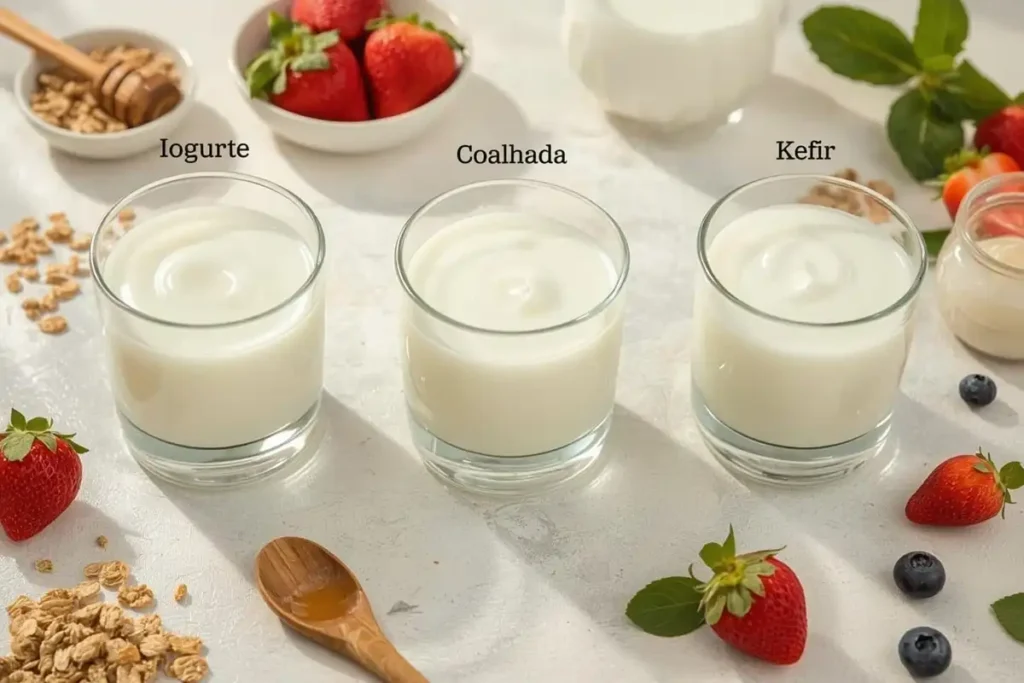 Iogurte, coalhada e kefir são três produtos lácteos fermentados muito populares, especialmente entre quem busca uma alimentação saudável e rica em probióticos. Mas muitas pessoas confundem esses três produtos ou não sabem exatamente qual a diferença entre eles. Embora todos sejam resultado da fermentação do leite, cada um tem características únicas em termos de microrganismos utilizados, textura, sabor e benefícios à saúde. Vamos desvendar as diferenças reais entre eles.