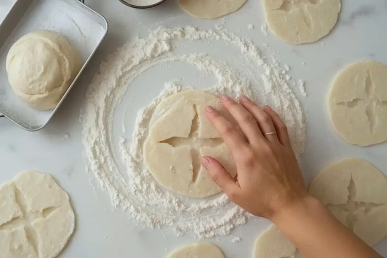 Abra a massa e corte em círculos. Marque uma cruz no topo de cada um.