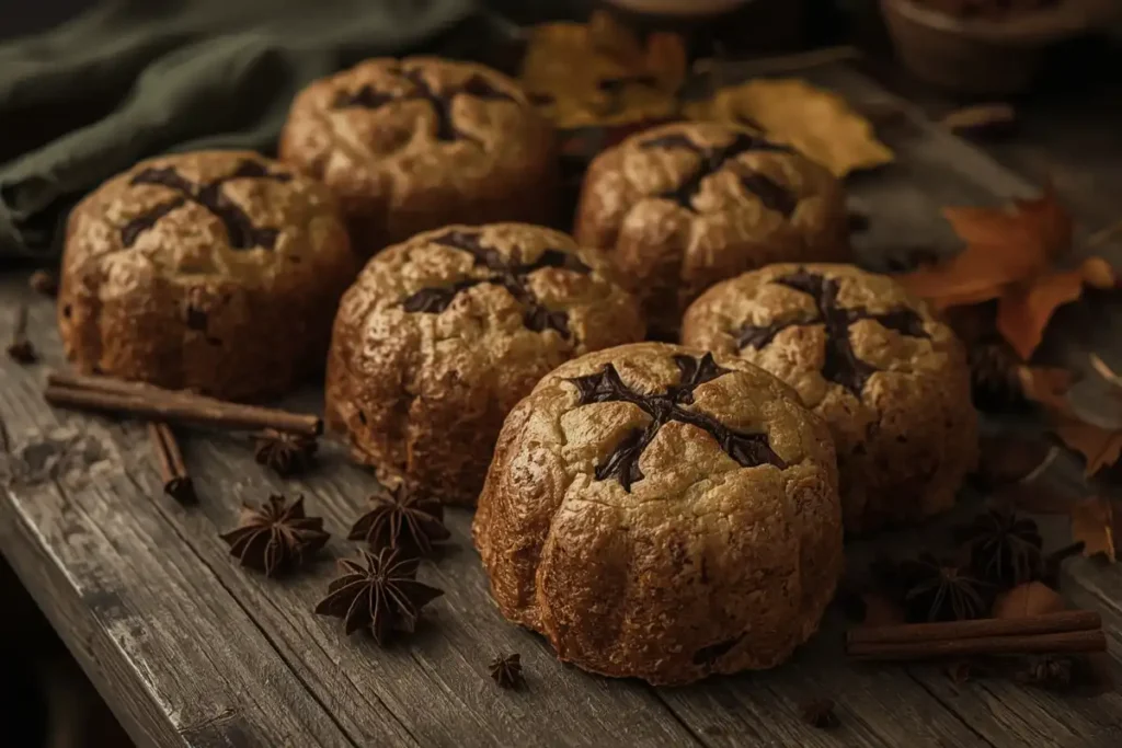 Os Bolos de Alma eram pequenos bolos ou biscoitos redondos, simples, muitas vezes feitos com especiarias como noz-moscada e canela, e decorados com uma cruz para simbolizar que eram uma esmola cristã. Eles não eram doces luxuosos, mas sim um alimento simbólico.