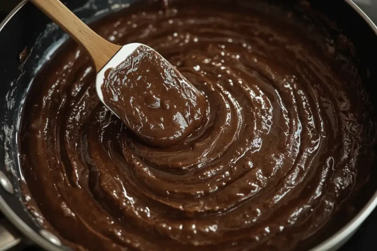 Ache o Ponto Certo: Continue mexendo até a mistura engrossar e começar a borbulhar. A partir daí, cozinhe por mais 2 a 4 minutos, apenas. Faça o teste do “caminho”: passe a espátula no fundo. O caminho deve se fechar devagar. O brigadeiro deve estar cremoso e espesso, mas não no ponto de enrolar. Desligue o fogo.