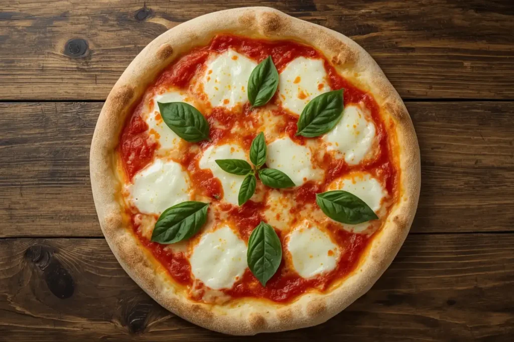 A Pizza Margherita é, talvez, a pizza mais icônica e fundamental do mundo. Em sua simplicidade genial, ela representa a base sobre a qual todo o universo da pizza foi construído. Seus três ingredientes principais são conhecidos por todos: molho de tomate, queijo muçarela e folhas de manjericão fresco.