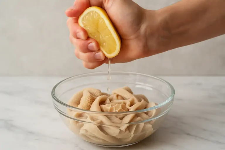 A Limpeza (O Passo Mais Importante): Não pule esta etapa! Mesmo que você compre o bucho já limpo, é fundamental fazer uma limpeza extra em casa. Lave bem em água corrente, esfregue com limão ou vinagre e, o mais importante, ferva-o em água com algumas rodelas de limão ou folhas de louro por alguns minutos (descartando a água depois). Esse processo, repetido duas ou três vezes, é o que garante a eliminação de qualquer odor indesejado.