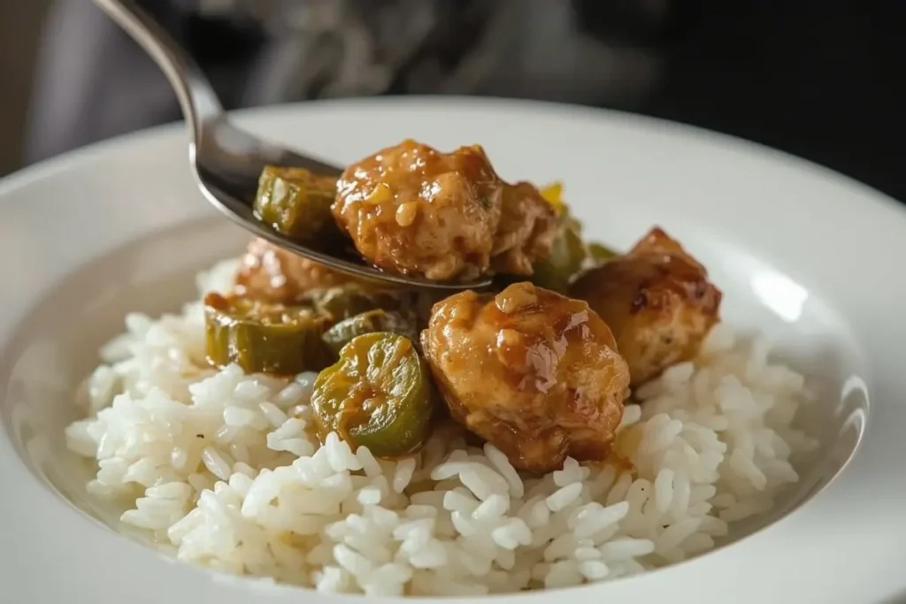 Junte o Quiabo: Nos últimos 5 minutos de cozimento, adicione o quiabo frito e reservado ao ensopado. Misture delicadamente e deixe cozinhar junto com o frango apenas para que ele pegue o sabor do molho, sem desmanchar.