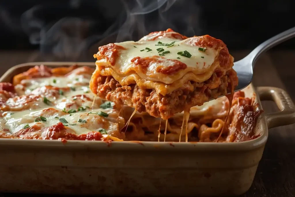 Deixe a lasanha descansar por 10 minutos antes de cortar e servir. Isso ajuda as camadas a se assentarem, facilitando o corte.