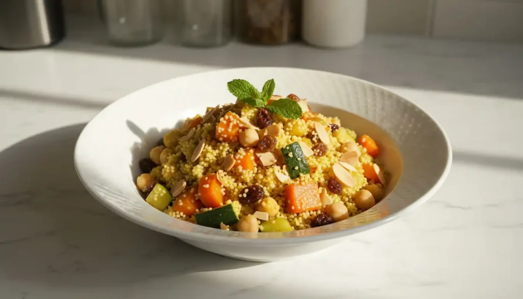 O cuscuz marroquino é um dos acompanhamentos mais versáteis e saborosos da culinária do Oriente Médio e Norte da África. Aqueles grãos pequenos e leves, temperados com especiarias aromáticas, frutas secas e vegetais, são perfeitos para acompanhar carnes assadas ou servir como prato principal vegetariano. O segredo está no preparo correto dos grãos, nas especiarias e nos ingredientes complementares.