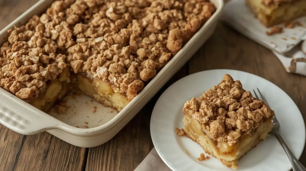 3. A Cobertura (A Estrela): A farofa Streusel que, ao assar, se transforma em uma crosta crocante, dourada e com um sabor irresistível de manteiga e canela.