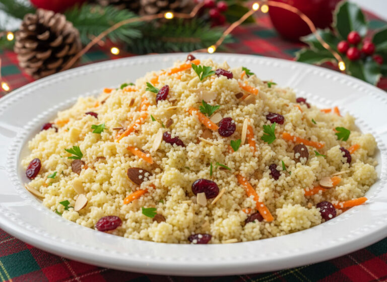 Este cuscuz natalino de couve-flor com amêndoas tostadas e cranberries é a combinação perfeita de leveza, beleza e funcionalidade para a sua mesa. Sofisticado, colorido e cheio de benefícios, ele prova que é possível criar pratos festivos incríveis sem sair do seu estilo de vida saudável. Que tal surpreender na próxima ceia com essa opção moderna e cheia de personalidade?