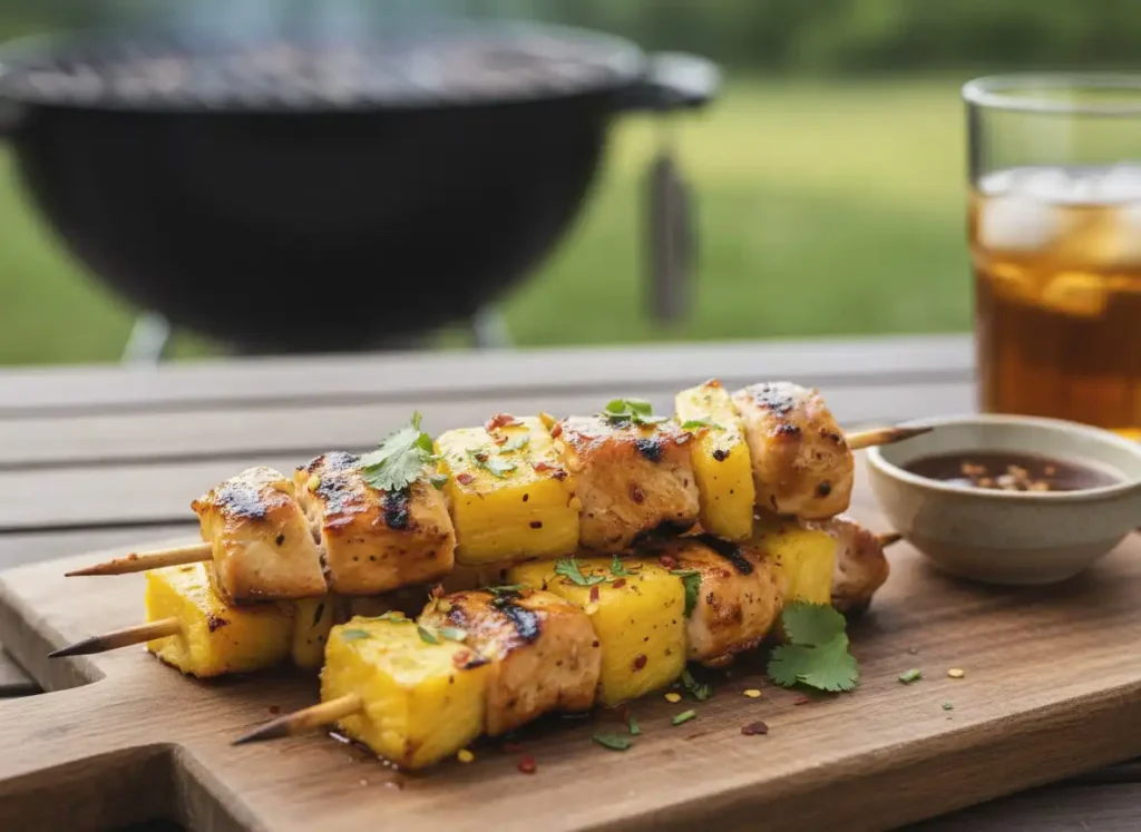 Espetinhos de Frango com Abacaxi e Gengibre ao Forno