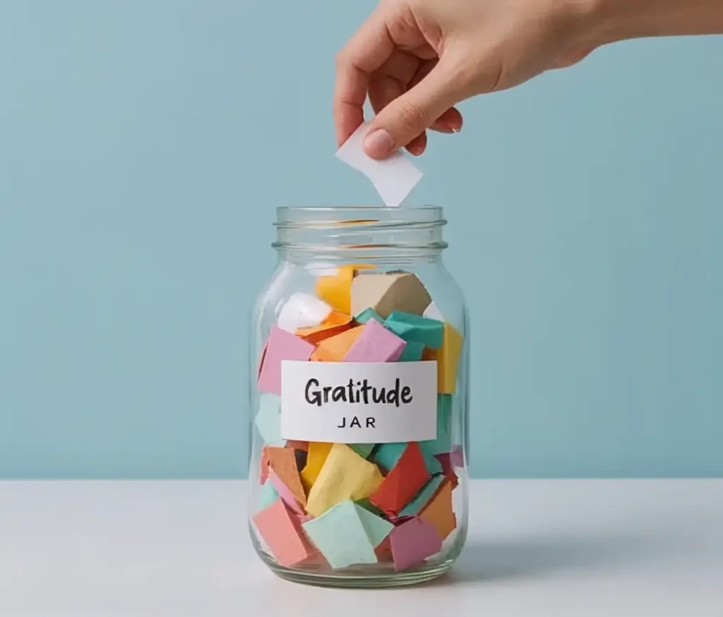 Pote da Gratidão: Mantenha um pote de vidro e pequenos pedaços de papel por perto. Sempre que algo bom acontecer, escreva, dobre e coloque no pote. Em um dia difícil, ou no final do ano, leia os bilhetes. É um lembrete tangível de suas bênçãos.