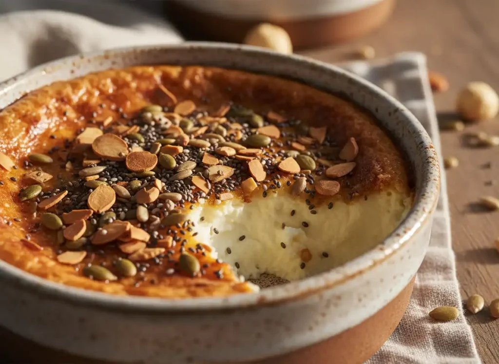 O iogurte assado com mel, laranja e crocante de sementes funcional é uma sobremesa delicada, nutritiva e extremamente aconchegante. Uma forma doce e saudável de encerrar o dia com equilíbrio, prazer e cuidado com o corpo.
