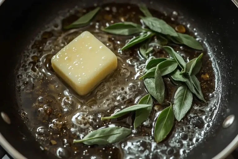 O Perfume (Sálvia na Manteiga Queimada): A mágica acontece quando as folhas de sálvia fresca são fritas em manteiga. A manteiga derrete e começa a dourar, liberando um aroma de nozes (o famoso beurre noisette), enquanto a sálvia libera seus óleos essenciais, ficando crocante e deliciosa. Essa manteiga aromatizada é a alma do prato.