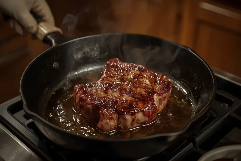 Sele a Carne: Aqueça a frigideira em fogo alto até ficar bem quente. Adicione um fio de óleo. Coloque os bifes na frigideira (você deve ouvir um chiado alto). Não mexa. Deixe selar por cerca de 2 a 3 minutos de cada lado para um bife ao ponto. Ajuste o tempo para o seu ponto preferido.