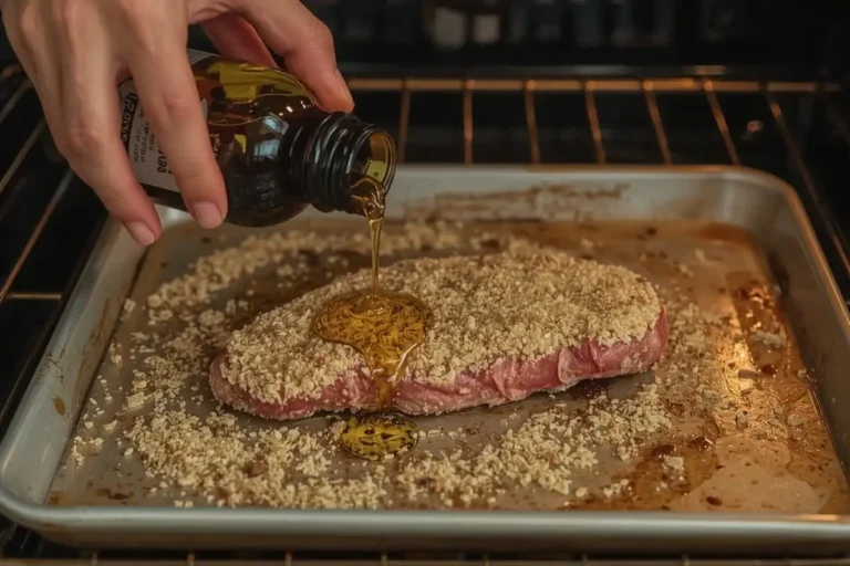 2. O Forno Bem Quente: O forno precisa estar preaquecido em temperatura alta (200-220°C). O calor intenso dá um “choque” no empanado, criando a crosta rapidamente e cozinhando o bife sem ressecá-lo.