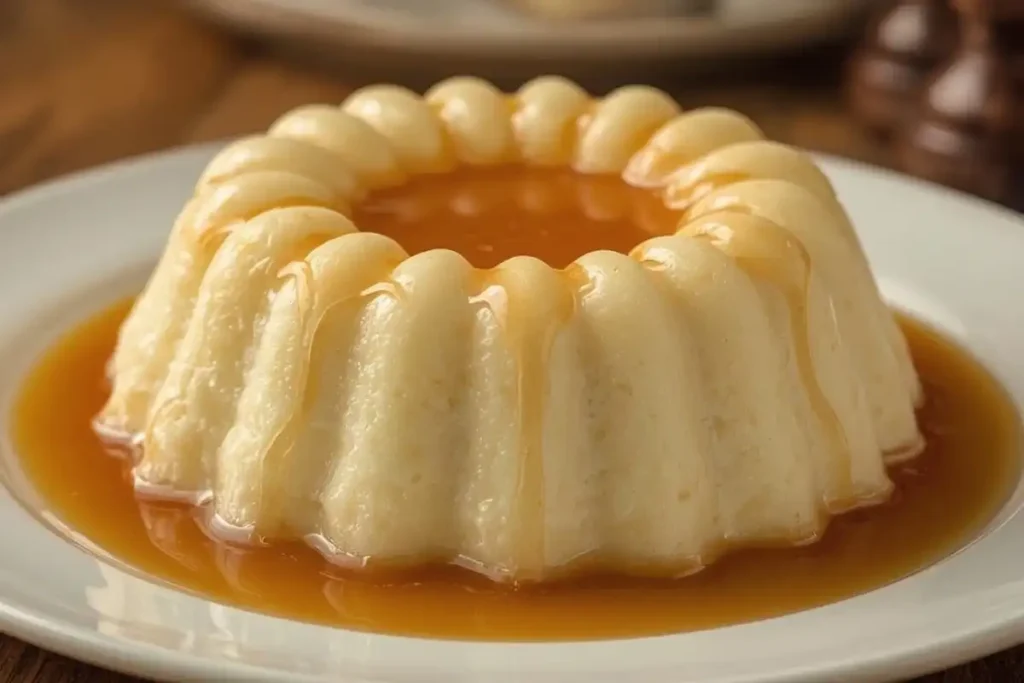 O Pudim de Claras é uma daquelas sobremesas que encantam pela simplicidade e pela elegância. Com uma textura que é uma mistura de suflê e merengue, ele é incrivelmente leve, aerado e delicado, parecendo uma nuvem doce que flutua sobre uma piscina dourada de calda de caramelo.