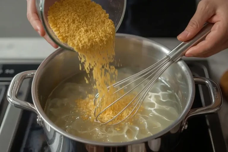 A Chuva de Fubá: O erro mais comum é despejar o fubá de uma vez na água quente. A técnica correta é adicionar o fubá em “chuva” ou “chuvisco”. Isso significa polvilhar o fubá lentamente e de forma contínua sobre a água, permitindo que cada partícula se hidrate individualmente antes de se aglomerar.