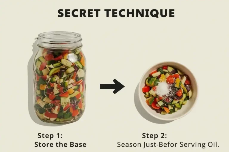 A boa notícia é que existe um segredo, uma técnica simples, mas transformadora, que permite que você faça um vinagrete no início da semana e ele continue crocante, fresco e delicioso até o final de semana.