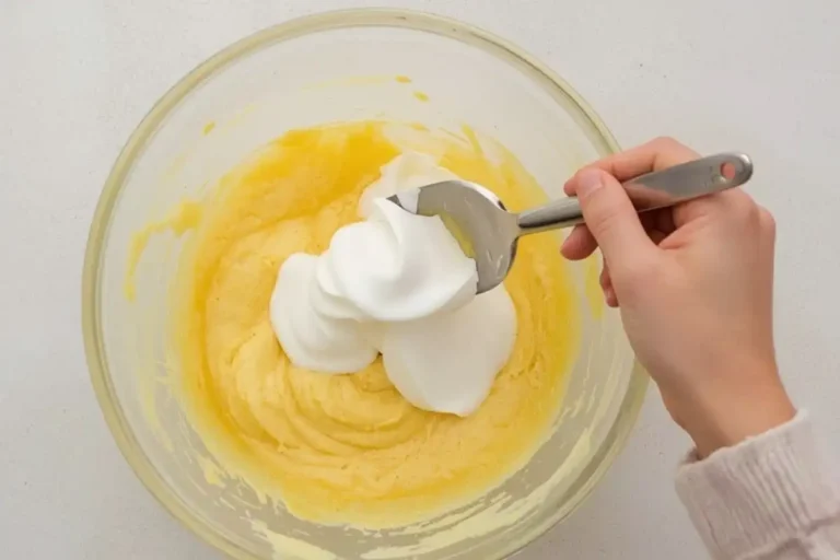 Incorpore as Claras (A Mágica): Adicione 1/3 das claras em neve ao creme de goiabada e misture sem muita delicadeza. Isso vai “amaciar” a base. Agora, adicione o restante das claras e incorpore muito delicadamente, com uma espátula, fazendo movimentos de baixo para cima, para não perder o ar da mistura.