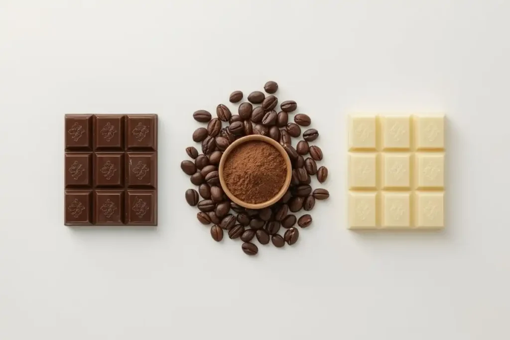 E o chocolate branco? Ele é feito com manteiga de cacau, açúcar e leite em pó. Percebeu o que está faltando? Exatamente: os sólidos de cacau. O chocolate branco utiliza apenas a gordura do grão de cacau, descartando completamente a parte escura e saborosa que define o chocolate. É por isso que ele tem uma cor marfim e um perfil de sabor completamente diferente, dominado pela doçura e pela cremosidade da manteiga de cacau e do leite.