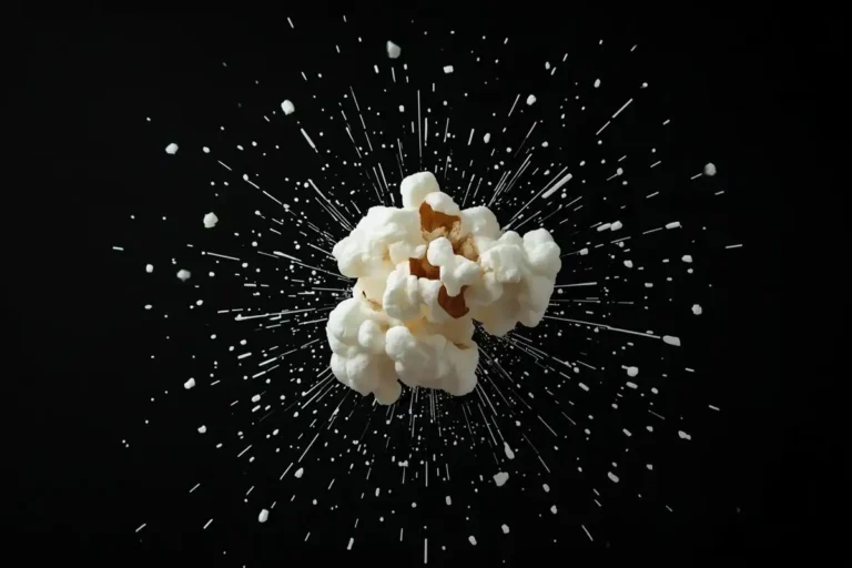 É nessa fração de segundo que a mágica acontece. A liberação súbita da pressão faz com que o amido superaquecido dentro do grão se expanda instantaneamente, inflando e se solidificando em contato com o ar mais frio. O grão vira do avesso, formando a estrutura branca e irregular que conhecemos como pipoca.