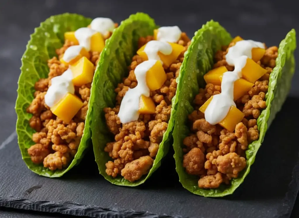 Os tacos de alface com carne magra, manga e molho de iogurte picante são a combinação perfeita entre leveza, proteína e um toque tropical surpreendente. Crocantes, suculentos, refrescantes e cheios de personalidade, eles tornam qualquer refeição mais divertida, funcional e saborosa — sem sair da sua rotina saudável. Que tal preparar essa explosão de sabores hoje mesmo?