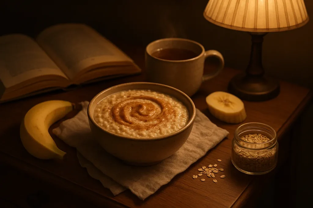 Creme noturno de banana, aveia e leite vegetal com canela.